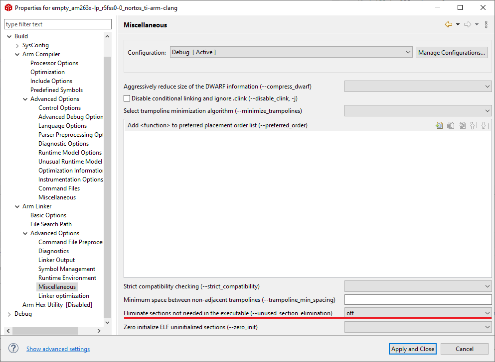 3. 최적화 또는 링커 세팅에 따라, 선언되었지만 실제 사용되지 않는 변수는 debug information에 포함되지 않아 easyDSP에서 모니터링되지 않을 수 있습니다. 이 경우에도 변수가 포함되게 하기 위해서라면 하기 옵션 설정하세요.