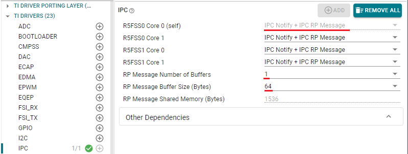 IPC RPMessage를 사용하는 코어(core a, b)에 대해서 IPC 설정이 필요합니다.