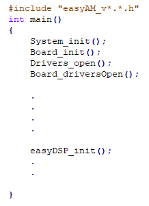 그리고 사용자 프로그램에서 각종 초기화 함수가 호출된 이후, easyDSP_init()을 호출하므로써, easyDSP 모니터링이 가능하게 합니다.