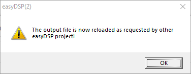 이는 코어 e와 코어 f의 easyDSP 프로젝트가 하나의 PC에서 수행될 때 자동적으로 수행되며 이후 코어 f의 easyDSP 프로젝트에서 하기 메시지를 송출합니다.